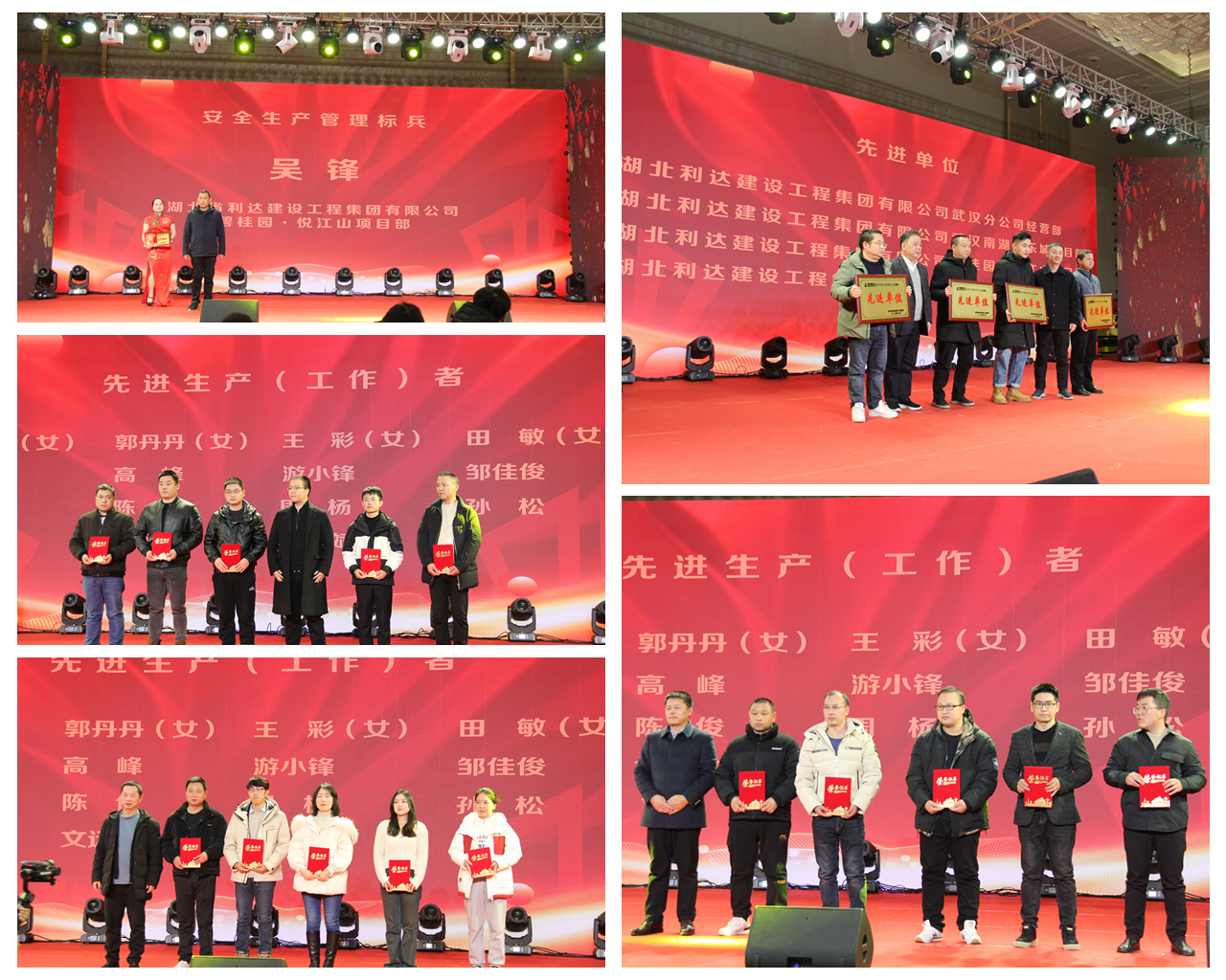 集團(tuán)董事高國(guó)學(xué)致辭并宣讀《湖北省利達(dá)建設(shè)工程集團(tuán)關(guān)于表彰2023年先進(jìn)單位和個(gè)人的決定》、《湖北利達(dá)建設(shè)工程集團(tuán)有限公司關(guān)于對(duì)2022-2023年度項(xiàng)目獲獎(jiǎng)情況的通報(bào)》。